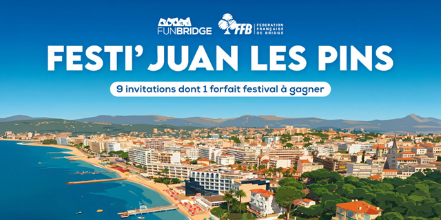 Une occasion idéale de jouer où que vous soyez… et surtout de tenter votre chance pour participer à l’un des plus beaux événements de l’année : le Festival International de Bridge de Juan-les-Pins, organisé du 8 au 17 mai dans le cadre exceptionnel de la Côte d’Azur. 🌴